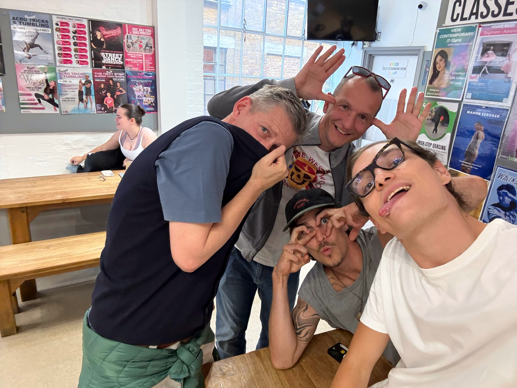Z željo po osvajanju novih znanj smo se podali v smeri plesnega studia, tokrat ponovno vsaka skupina v svojo smer. Jazz plesalci so pridobivali nova znanja pod vodstvom Thomasa in Stuarta na področju ‘Fosse Jazz’ in ‘Contemporary’ tehnike, medtem ko je skupino hip hoparjev čakala ‘Locking & Jazzrock/Boogie’ delavnica z Jimmyjem.